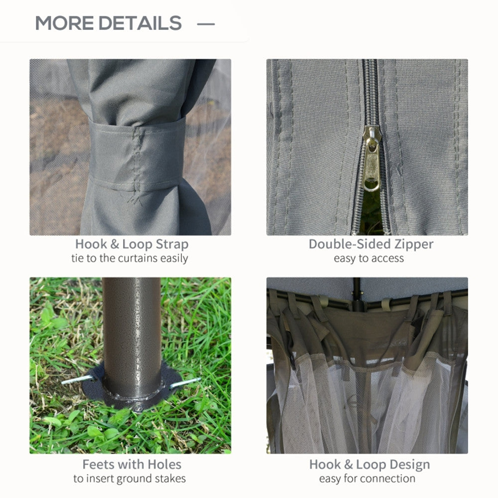 144x144 Inch Round Outdoor Gazebo, Patio Dome Gazebo Canopy Shelter with Double Roof, Netting Sidewalls and Curtains, Zippered Doors Grey AS ( Amazon Shipping)(Prohibited by WalMart)