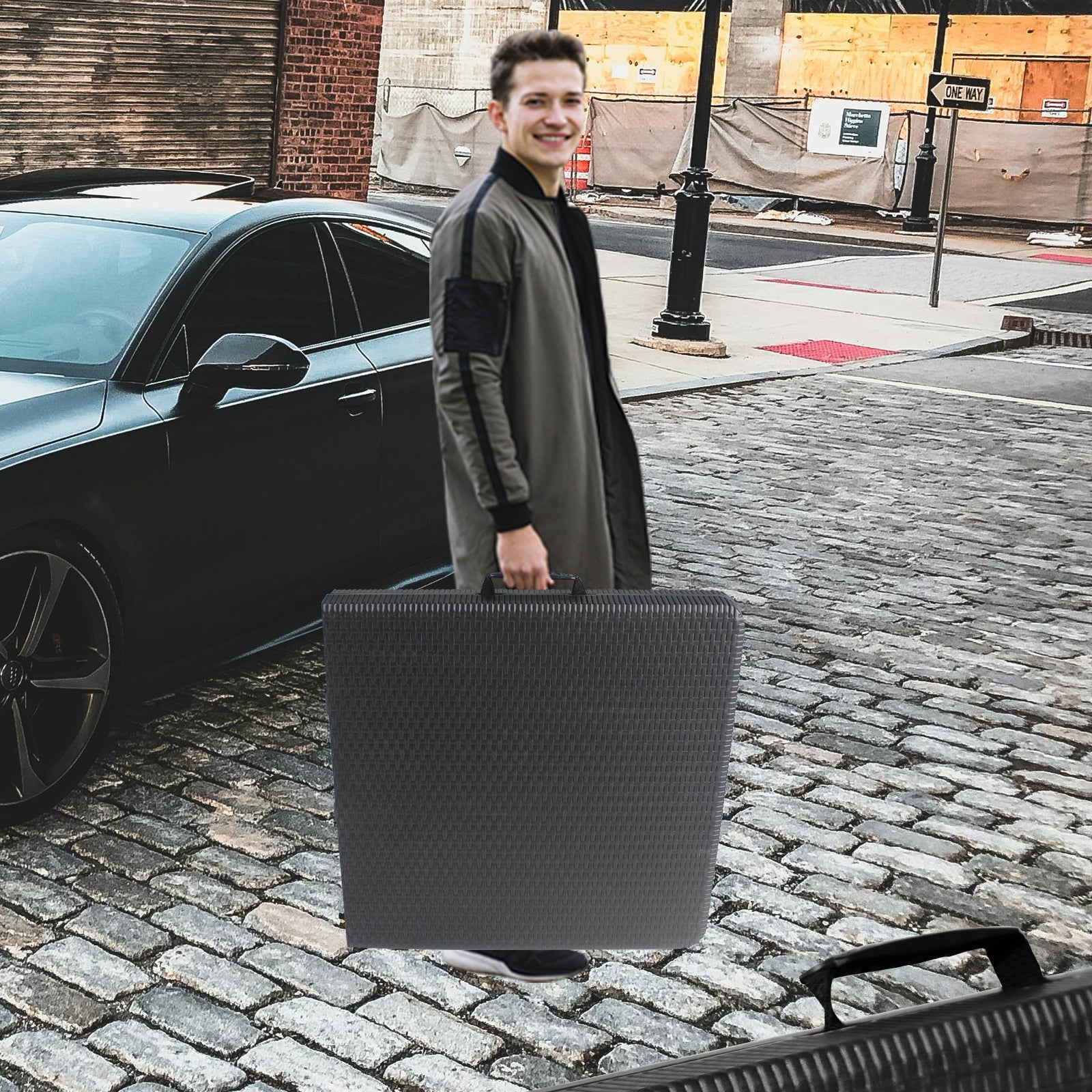 4ft Rattan Folding Table for Indoor&Outdoor, Portable Foldable Table Rattan Plaited Black