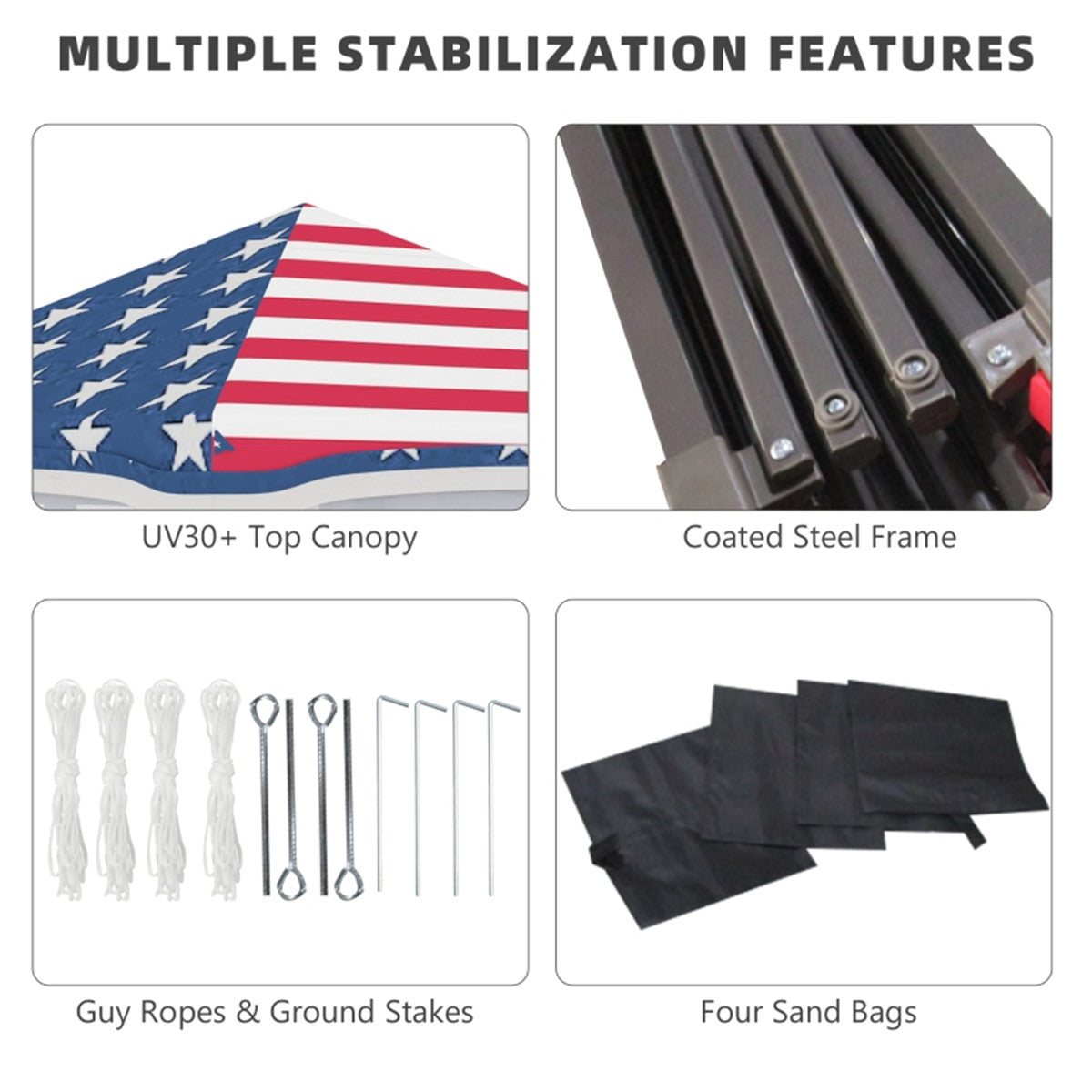 - - Comes with weight bags, guy ropes, and stakes for mounting it to soft ground